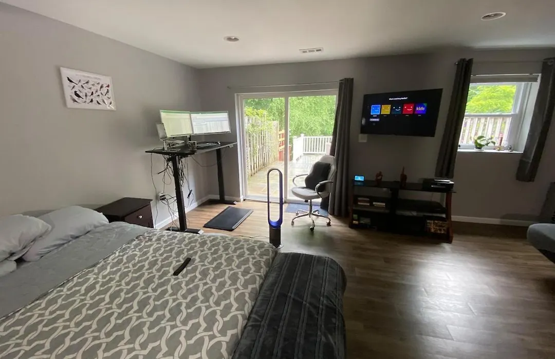 The 56 m² Studio Unit With Home Office And Private Sauna Alexandria is located within a 10-minute drive of Fairfax Sportsplex Recreation Center and 4.2 km from the Cameron Run Regional Park. This apartment is situated within 10 km of Alexandria Union train station and within reach of Yoakum Pkwy & Stevenson Ave bus station.